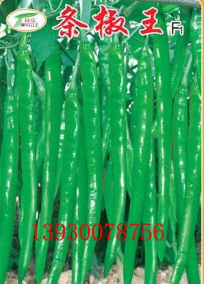 3、条椒王:中早熟,长势强,株型紧凑,适应性广,抗病毒病和疫病,抗衰老能力强。果实长线形,光泽度好,果长23厘米左右,果径1.4厘米,单果重20g左右。亩产鲜椒可达3500kg。果实光滑顺直,首尾匀称,辣味浓香,品质佳。果实硬度好,耐长途贩运,货架期长。