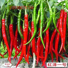 4、红泽一号:该品种是利用鸡泽辣椒和川椒杂交选育而成。属于粗线椒品种,早熟,株高60厘米,株幅55厘米,果长20厘米,单果重18-20克,嫩果皮绿,熟果鲜红,味辣浓香,适抗病性强,耐高温,亩产鲜椒3000公斤。