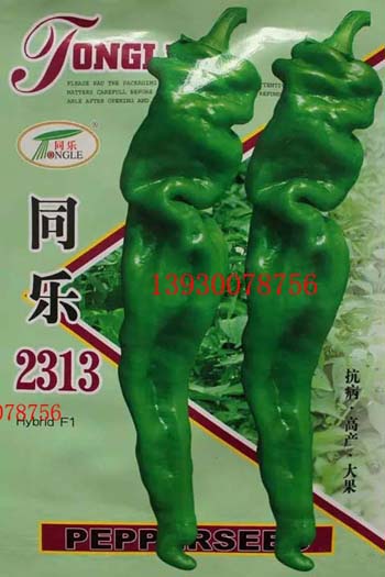 同乐2313和同乐23188:一代杂交螺丝椒,极早熟,始花节位10节左右,果长26-28厘米,宽3-4厘米,单果重60-120g左右,果皮绿色,辣味浓,皮厚质佳,耐运输,耐低温,抗高温,抗病。节间短,挂果多,膨果快,连续结果能力强,产量高,栽培适当亩产6700kg以上。