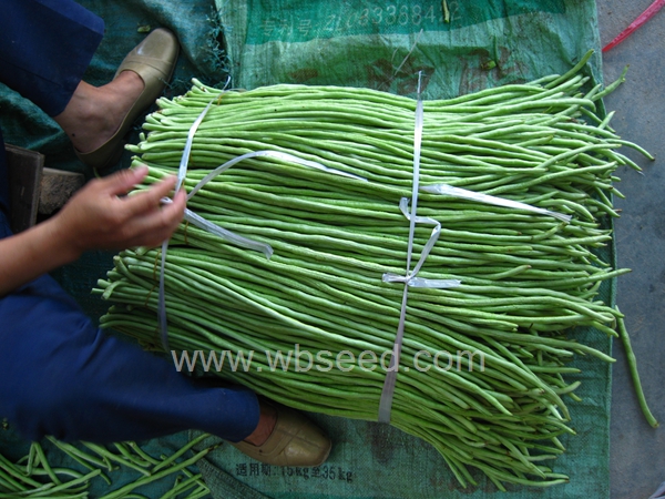 豇豆新品种,由南京万邦种业有限公司经多代选育而成。该品种中早生,长势较旺,抗病抗逆性强,适应性广,分枝中等,结荚多,产量高,嫩荚嫩绿色,比绿白条绿20%,豆荚长而粗且肉厚,质嫩,耐老化,肥水管理好的情况下不鼓籽,无鼠尾,荚面平滑光亮,上下粗细均匀,栽培得当采收盛期长,对荚多而整齐,返花率高,商品率高。