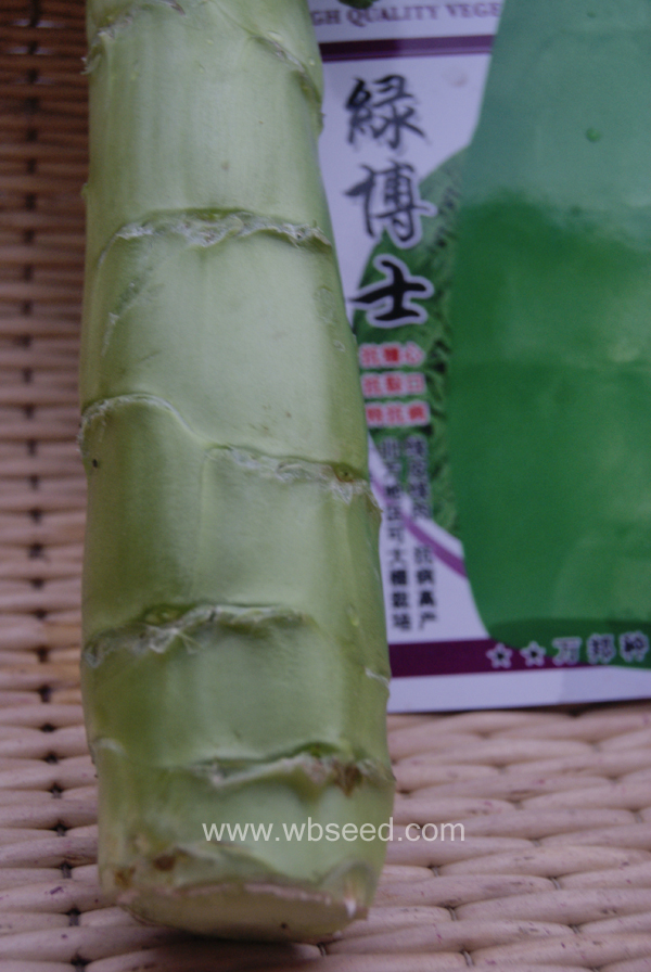 属特耐寒品种,宽尖叶,色深绿,叶簇开展度较大,茎杆粗长棒型,节间稀,皮绿肉青,质脆清香,在气温5-18℃条件下正常生长,单株重可达1-1.5kg。