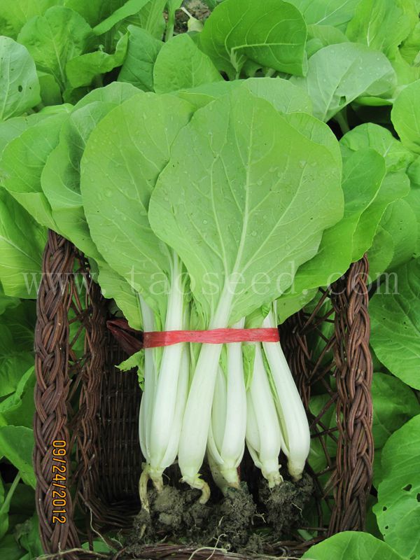 新育成小白菜,株高28厘米,株型紧凑,梗雪白扁平,叶近圆形浅绿色,纤堆少,味清甜,耐热耐雨,抗病性强,适应性广。