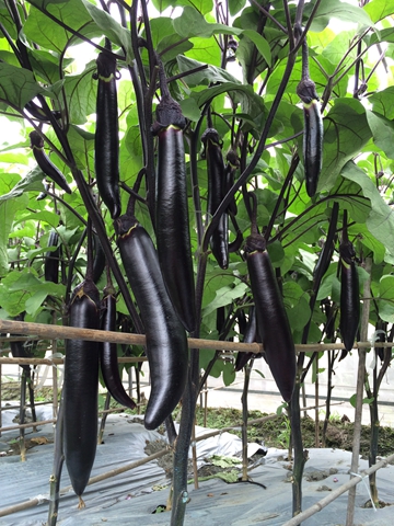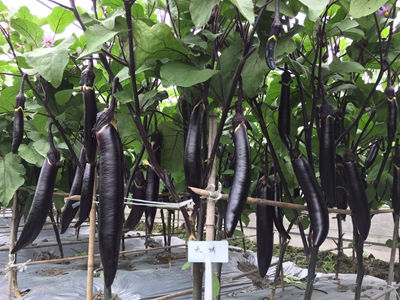 中早熟品种,植株生长势中等,是墨茄消费地区春露地及晚秋栽培的优秀品种,果皮墨黑色,有光泽。果中粗顺直,果长30-40cm,果径5cm左右,一般果重300-350克。