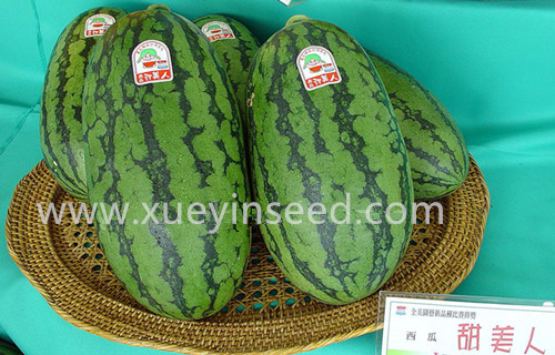 早生,生育强健,座果整齐,果实椭圆型且饱满,果皮墨绿色底狭黑条纹,外观优美,果重约3.5公斤,肉色鲜红,肉质脆爽,不易空心,糖度约13%,果皮坚韧 ,耐贮运。