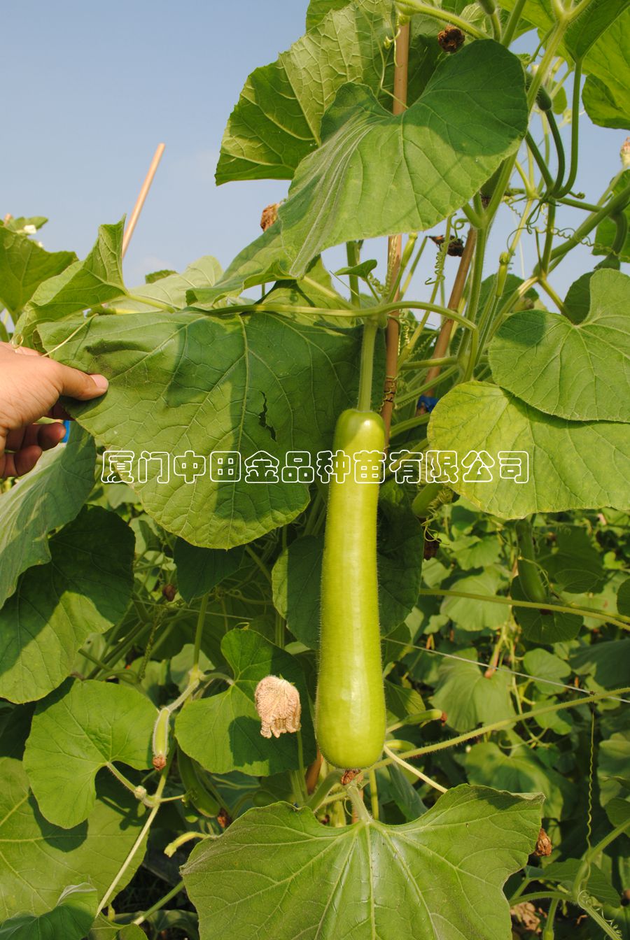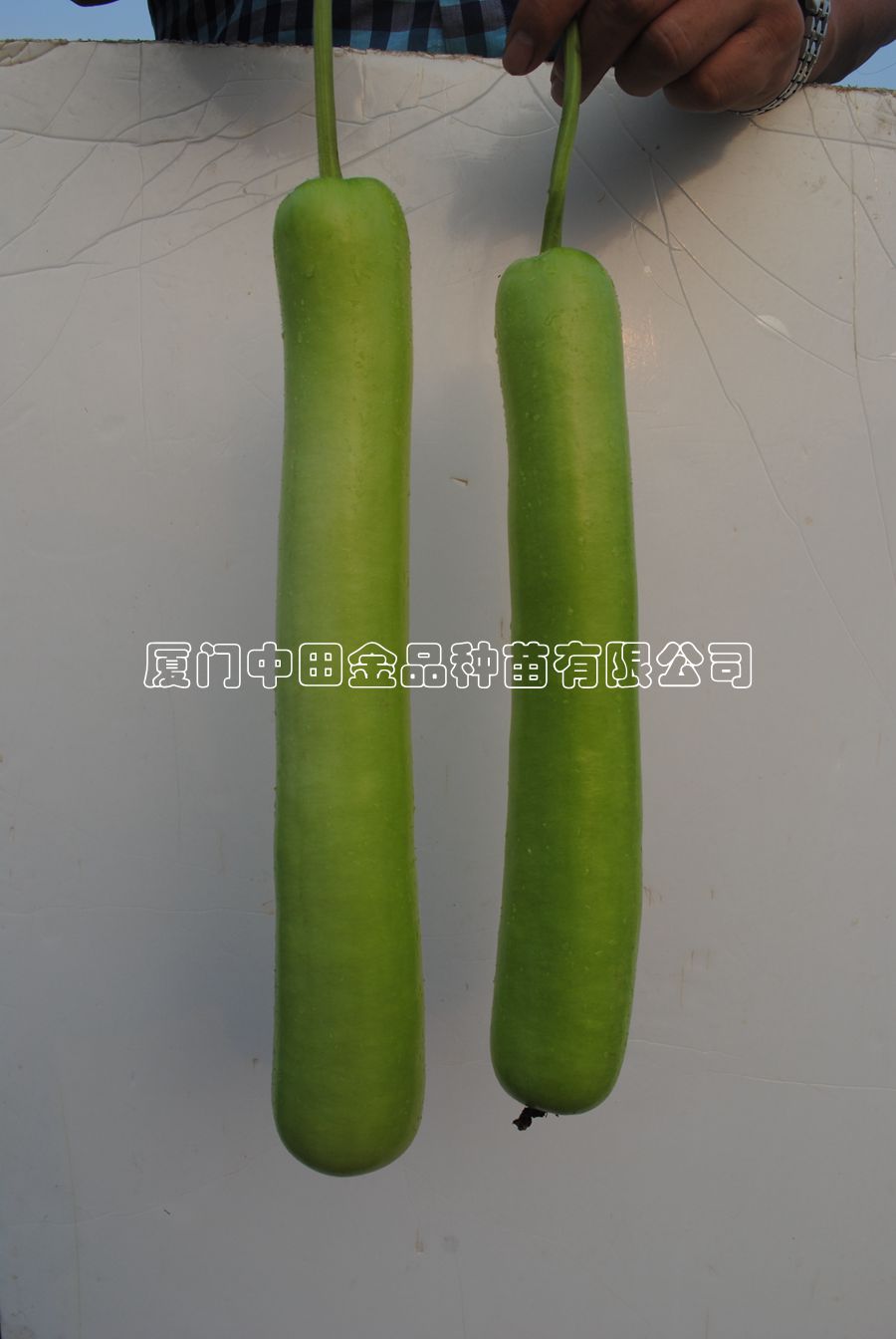 该品种早熟、高产,植株蔓生,分枝性强,侧蔓结瓜,从定植到采收50天左右,瓜呈圆柱形,长28-35cm左右,横径6-6.5cm左右,单瓜重550-600克,瓜皮翠如青玉,表面亮丽平滑,果肉白色,肉质紧密柔软,味微甜,品质极佳。
