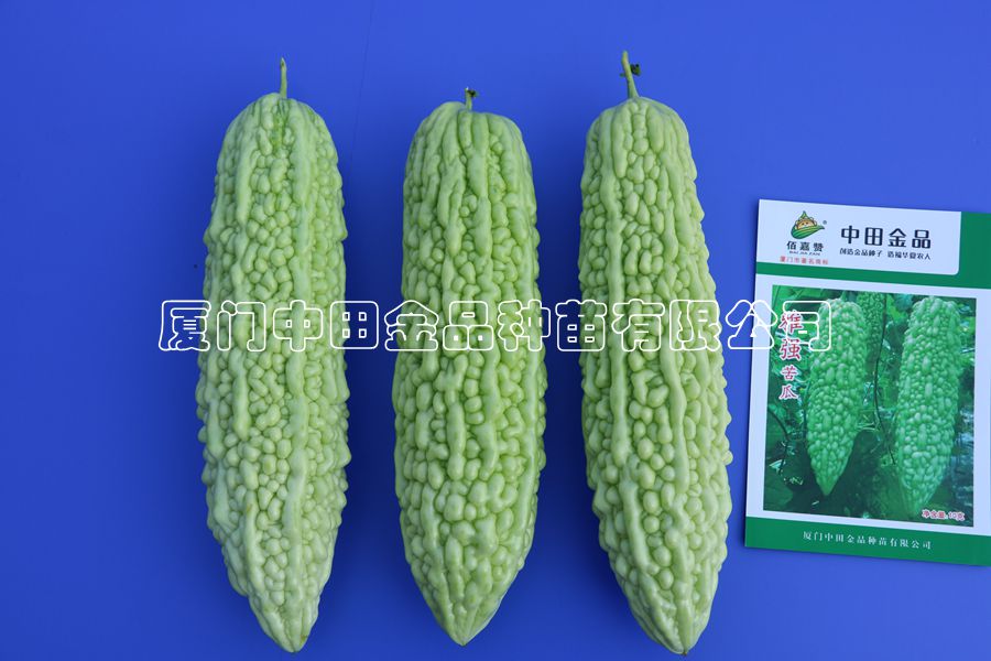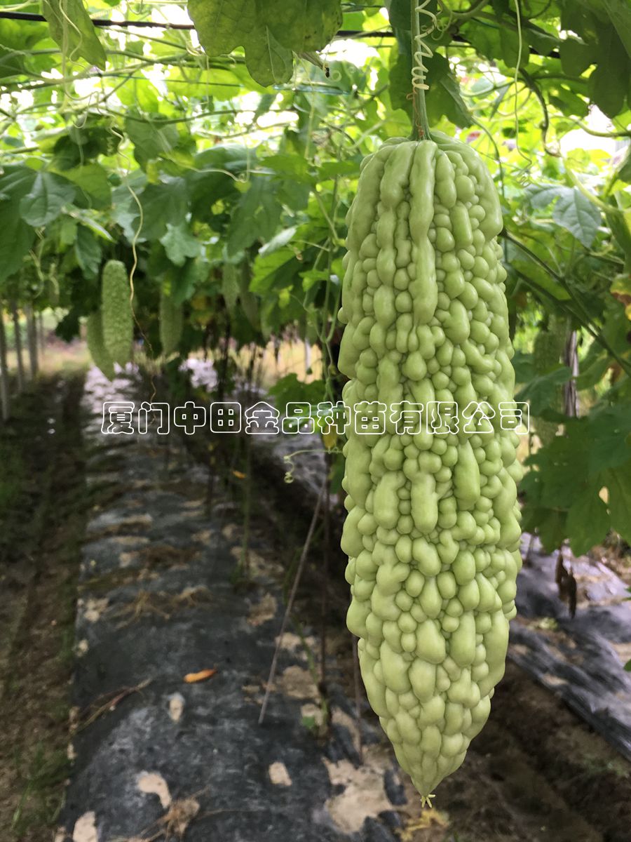 杂交一代,中早熟品种,植株生长强健,抗性好。短棒形,果实白绿色,果面有珍珠瘤,果型圆整饱满,果皮特别亮,外观优美,商品率高。瓜长越30-32厘米,横径约7-8厘米,适收时单瓜重500-800克,肉质脆嫩,苦味适中,品质超群。适合长江以南喜白绿色苦瓜地区春夏秋种植。