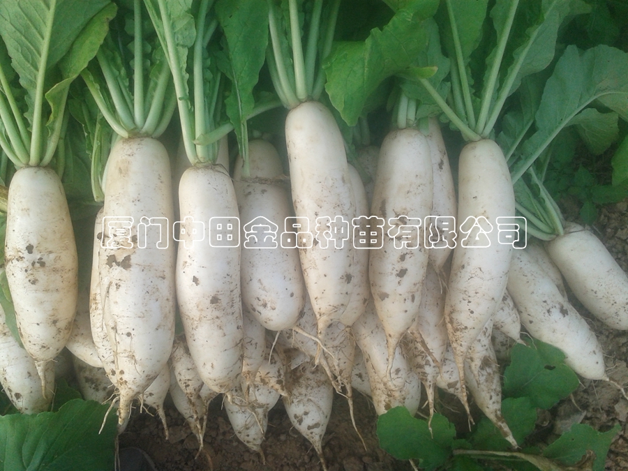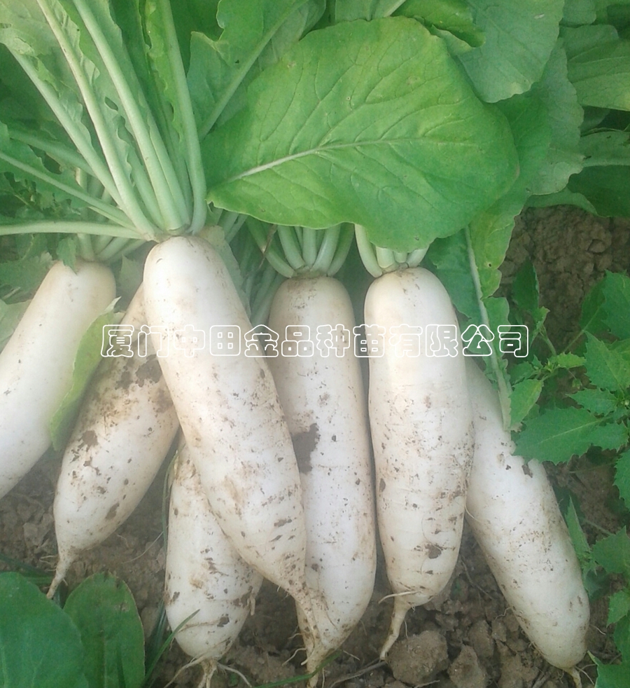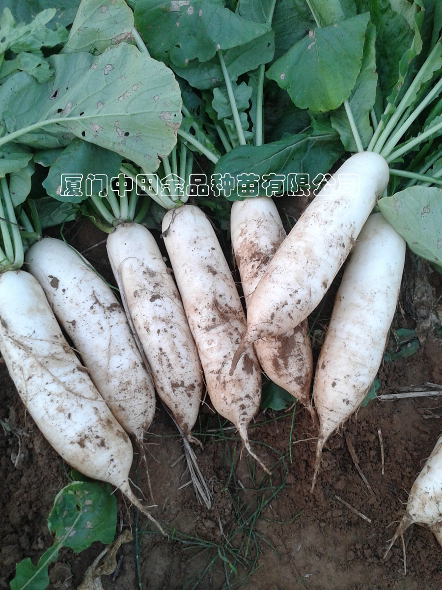 早生,株形半直立,板叶,叶色稍浓绿,叶数少。根长约25厘米,根径约8厘米,短矸形,根白色,少须根,根径重约450克。皮细白光滑,品质细嫩,空心晚。适宜播种温度18-28度,适宜生长温度 18-30度。华南平地适宜 9-10月播种。生育期约50天。