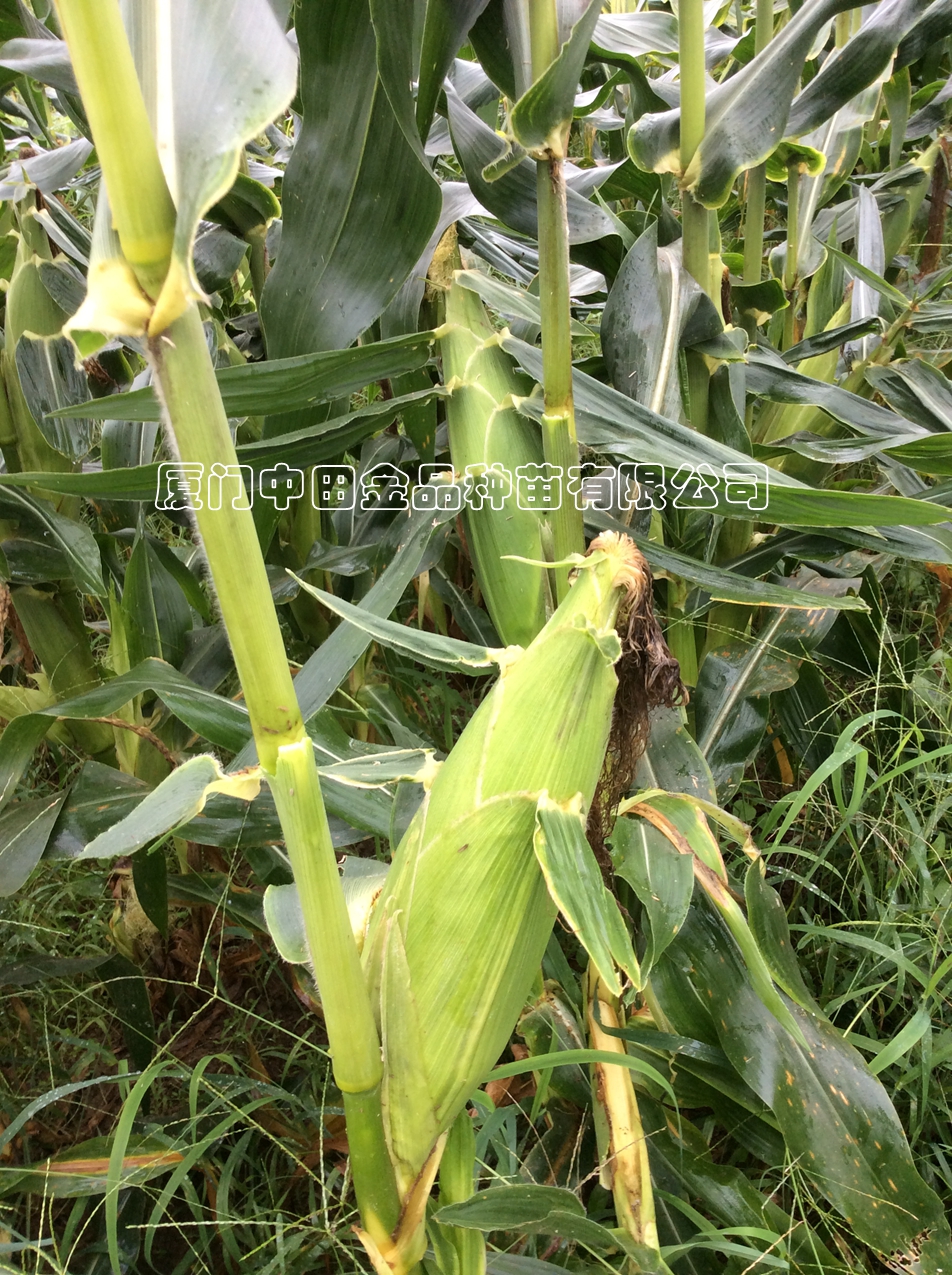 中早熟品种,长势强健,耐热。株高190cm-210cm。春秋两季生育期约80-90天。穗位高约60-70cm,穗位整齐一致性好,抗病性倒伏能力较强。果穗筒型,穗型美观。穗长20cm左右,穗径可达5.5cm,穗轴白色,籽粒金黄色、均匀、光泽亮丽。籽粒排列整齐,行数14-16行,苞叶翠绿紧实,箭叶均匀整齐。单苞重可达600克。穗重(除苞叶)可达400g。甜度高,糖度保持力较长。脱籽率高,耐贮运。货架期长,是鲜果商及加工厂选择之优良品种。