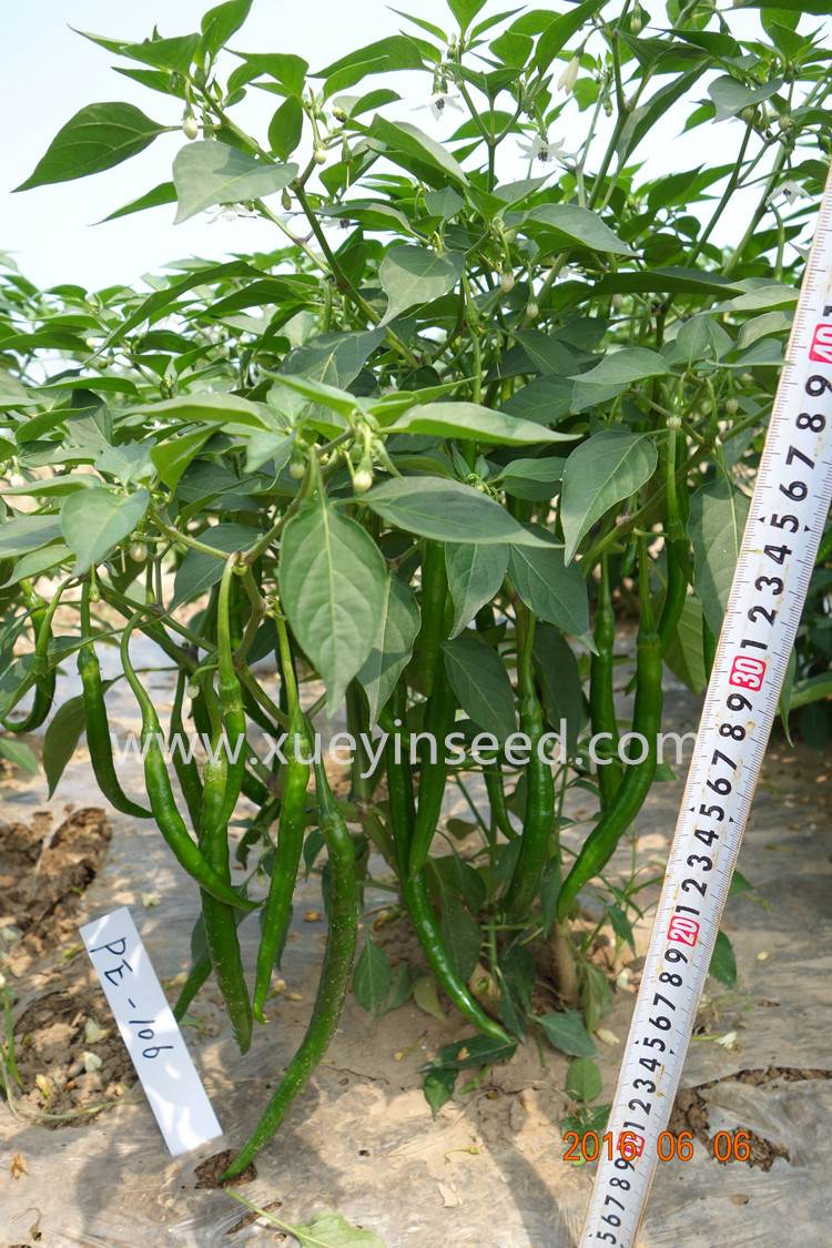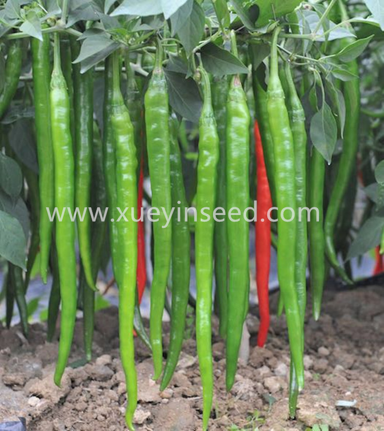 中熟,果面光滑顺直。果长22-24厘米,果宽约约1.8厘米;青果深绿色,老熟果红色且硬,耐储运,单果重25克左右。叶片小,叶色浓绿,味辣;耐热、耐湿性好,,连续坐果性好,适宜鲜椒上市或酱制加工。