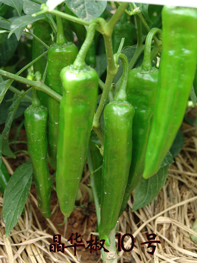 果实更大 品质更好 中晚熟杂交一代,株高60-70cm,株幅50-60cm,果实粗牛角形,横径3.5cm,果长13-17cm,果肉厚0.35cm,单果重60-70g,最大可达100g以上,嫩果浅绿色,耐贮运,辣味中等,品质好。抗病、耐热、后劲足,适于全国各地栽培,特别适于长江流域越夏栽培。但不适合海拨1000m以上高山栽培,也不适作保护地栽培。