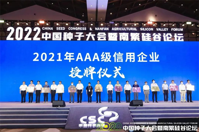 激励种业创新,营造良好环境,会上还颁发了中国种子协会“十年AAA”信用企业、2021年AAA级信用企业牌匾,颁发了2021年“张海银种业促进奖”。