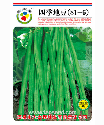 简介: 矮生,植株整齐直立,株高4550cm,叶色深绿,荚圆棍形,荚绿色肉厚,纤维少,口感好。荚果长1820cm。品质佳,抗病性强,耐热,耐寒性好。适于各国各地种植。