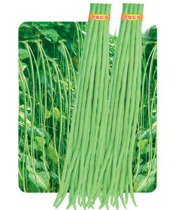 特早熟,小叶,主侧蔓同时结荚,双荚率高,早期产量突出。嫩荚绿白色,荚长100厘米左右,最长可达120厘米,前期、中期、后期荚长均匀,整齐,顺直,荚面光滑肉质厚,不鼓籽,无鼠尾。采收期长,适合春季、秋季栽培。
