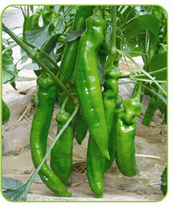 简介:1、杂交一代早熟大型牛角椒。2、果实鲜艳绿色,长30厘米左右,最长果38厘米左右,粗5-7厘米。3、果率高,抗性强。4、适合春秋保护地和我国南北方露地栽培。