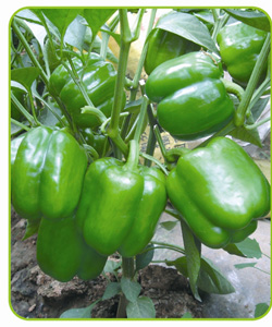 简介:1、中早熟杂交一代,果实正方灯笼形,四心室率高。2、青色浅绿,成熟果黄色,果长和果粗均为10厘米左右,单果300克左右。3、果肉厚硬,特耐贮运,长势旺盛,果率高。4、适合采青椒,采黄色彩椒。