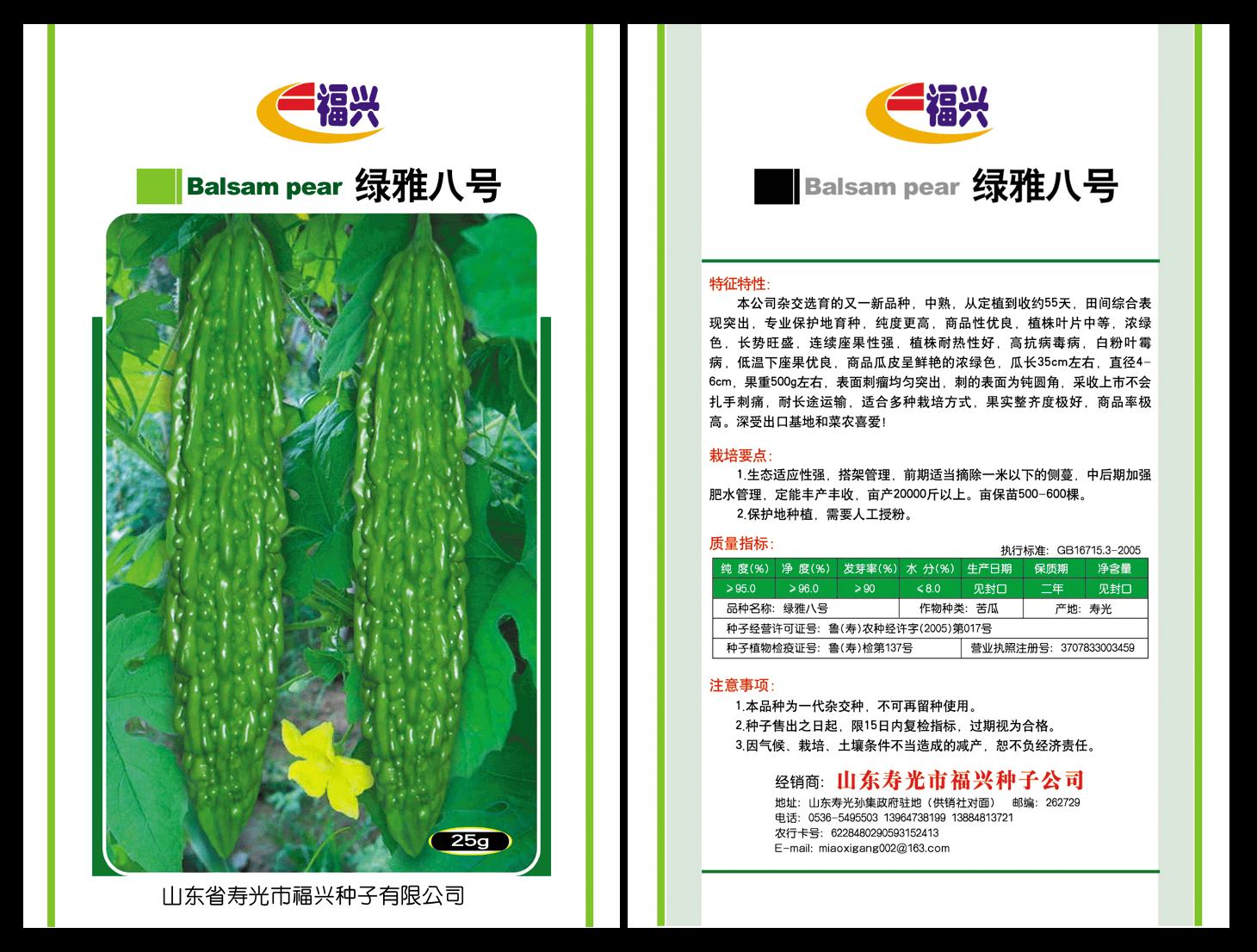 简介: 绿雅八号——苦瓜种子本公司杂交选育的又一新品种,中熟,从定植到收约55天,田间综合表现突出,专业保护地育种,纯度更高,商品性优良,植株叶片中等,浓绿色,长势旺盛,连续