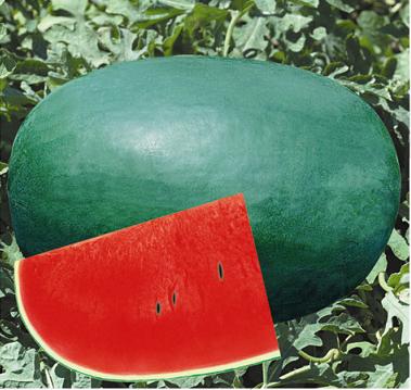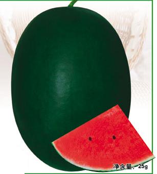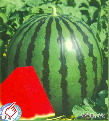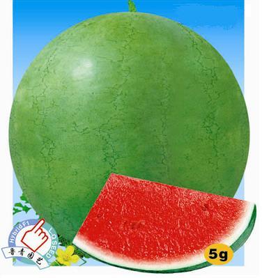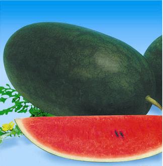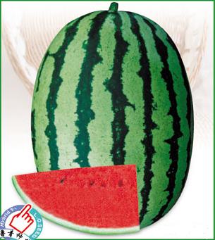 简介:中熟品种。抗枯萎病,耐重茬,果实椭圆型,果皮绿底上覆有青黑色条带,瓤色红艳,口感甜脆爽口,中心含糖11.8度左右,果皮硬度强,耐运输。单瓜重8kg左右,大瓜可达15kg以上,丰产性特好。