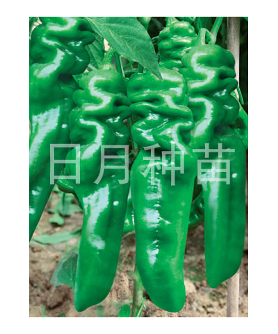简介:一代杂交,猪大肠形皱皮椒,早熟,耐低温,抗病,节间短座果多,青果翠绿色,品质佳,辣味中等,果长28-35cm,宽4-5cm,膨果快,连续座果能力强,产量特别高,在全国很多辣椒基地表现特别优秀。