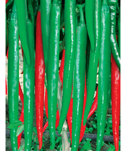 简介:产品特性:中早熟,植株长势强,分枝多,节间较密,叶片小,连续座果能力强,节节有果,株高60厘米左右,株幅50厘米,果实细羊角形,果长23-26厘米,果径1.5-1.8厘米,果实光亮如玉,果形一致性好,硬度强