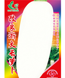 简介:1.叶簇半直立,叶片呈椭圆形,叶缘羽状全裂,叶背浅绿,抽苔晚;2.肉质呈长方梭形,长25-35cm,色白皮薄,生长速度快,冬性强;3.播种后80-110天收获,可延迟150天不空心,单个约重2.2-3kg.
