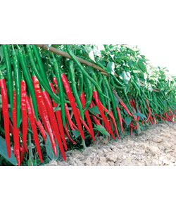 简介:产品特性:中早熟,植株长势强,分枝多,节间较密,叶片小,连续座果能力强,节节有果,株高60厘米左右,株幅50厘米,果实细羊角形,果长18-20厘米,果径1.2-1.6厘米,单果重15-20克,果实光亮如玉,果形一