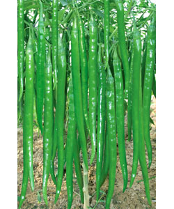 简介:早熟长线椒,结果多,连续座果能力强,节节有果,株高60cm左右,果长25-30cm,果粗1.5cm左右,果浅绿色,皮薄质脆,品质佳,香辣,果面微皱,椒面顺直,适应性强,抗病,采收期长,产量高,亩产4000kg左右,是