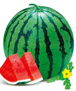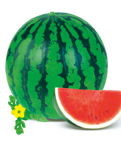 简介:早熟,成熟期26天。果型圆型,果皮绿色,着深色美丽大条纹,果皮薄,果肉大红,纤维极少,风味独特,多汁肉脆,含糖量高,折光糖达14度。产量高,单果重4-6公斤,亩产5000公斤以上,作保护地种植可提早上市