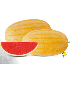 简介:极早熟品种,生长势旺盛,抗热耐寒性强。果实长椭圆形,果皮金黄色,有暗色条带斑纹,外观及其可爱,单瓜重3-4公斤以上,瓤色大红,肉质细脆多汁,风味独特,中心含糖量在14度以上,梯度小,口感特佳,果