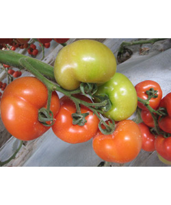 简介:高硬度自封顶红果番茄,4穗左右封顶。 杂交一代,果实5-6心室,硬度特好(同进口品种相当),非常耐贮运,适合长途运输和出口。果实高圆,成熟果大红色,光泽度好,单果300-350克。抗病病性突出,尤抗病毒