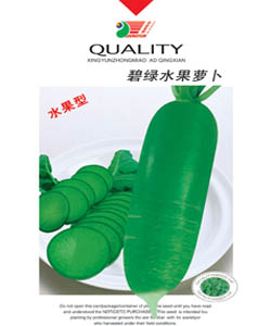 简介: 鲜食水果型萝卜,全生育期70-80天,叶片匍匐生长,外叶翠绿色,肉质根长15-20厘米,横径5-6厘米,入土部分仅占1/5,皮、肉均呈翠绿色,生食甘辛适口,汁多味正,特别适合于贮藏至春节前后
