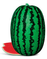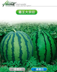 简介: 中晚熟大果型品种,具有京欣类西瓜的高品质,又表现出金钟冠龙的外观美丽。抗病、耐裂、丰产、高商品性,果肉鲜红,汁多爽口,含糖量12°左右,含糖梯度小。一般单瓜12-20斤左右