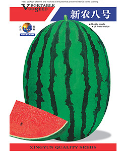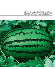 简介: 中晚熟品种,大果型,生长强,易座瓜,抗病性强,瓜形椭圆,果型整齐,翠绿色底覆深墨绿色锯齿形条带,果肉鲜红色,少纤维,少籽,高丰产性,亩产表现10000斤以上。Da Yuan Sho