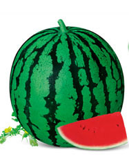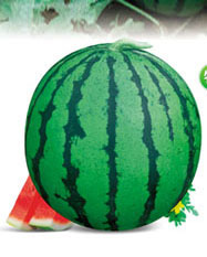 简介: 早熟品种,果型略高圆,瓜皮翠绿,覆14-16条深墨绿色条带,全生育期85天,开花后28天成熟,具有较强的抗裂性,外观大方,果肉艳红,含糖量13°左右,梯度小,单瓜重15-20斤
