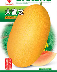 简介: 中熟种,哈蜜瓜类型,全生育期75-90天,果实椭圆形,成熟后果皮金黄,果面全网纹,单瓜重5kg左右,果肉桔红色,肉质酥脆,口感极佳,适应性广,不易裂果,极耐贮运。Da Mi Long