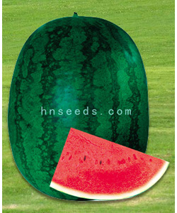 简介:该品种属中熟一代杂交种,果实花后32~35天成熟。茎叶粗壮,生长势强,节间密,雌花多,易于坐瓜。瓜形椭圆,皮色黑绿,瓤色大红,肉质紧密不空心、不裂果,中心糖11度以上,单瓜重10公斤以上,有稳定的高