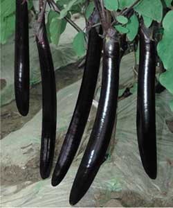 简介:极早熟、耐热、耐湿、抗病特性:1、极早熟,一代杂交种,果实长条形,果皮黑紫色。2、果长30-35cm,横径3-4.5cm,单果重150g-180g左右。3、多花、耐热、耐湿,商品性好,抗病性强,光泽度极强,持续座果能力强。