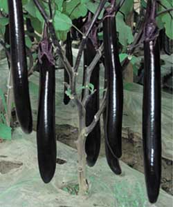 简介:早熟、耐热、耐湿、抗病、商品性好特性:1、极早熟,一代杂交种,果实长条形,果皮黑紫色。2=、果长30-35cm,横径3.5-4.5cm,单果重160g-200g左右。杂交种,果实长条形,果皮黑紫色。3、多花、耐热、耐湿,商品性