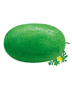 简介:中熟种,开花至果实成熟35天,植株生长势旺,抗枯萎病极强,可重茬地栽培,易坐果,果实椭圆形,果皮浅绿色上有深绿色条带,外观似金钟冠龙。果肉红色,质地细脆,口感好,品质优,中心糖12%,平均单瓜8公