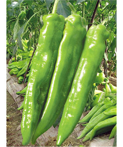 简介:极早熟浅绿色大牛角,微辣,果长28厘米,最 长可达35厘米,粗4-6厘米,果实光滑顺直,光泽度好, 连续座果能力强,抗病突出,适合春秋保护地栽培。