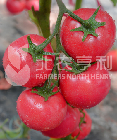 简介: 亲本由国外引进,无限生长型,亮粉大果,硬度极高,果肉厚,长势强、连续坐果性强、耐低温弱光好,高圆型,单果重300-350g左右,产量高,亩定值2200-2400株左右,适宜长途运输,是边货超市等高档果