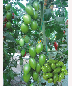 | 简介:长椭圆形绿色小番茄,带尖,无限生长,单果重16克左右,成熟果晶莹剔透带黄晕,肉厚耐裂,适宜保护地栽培 Green FeierMini-tomato type, oblong shape and orange color, indetermina |