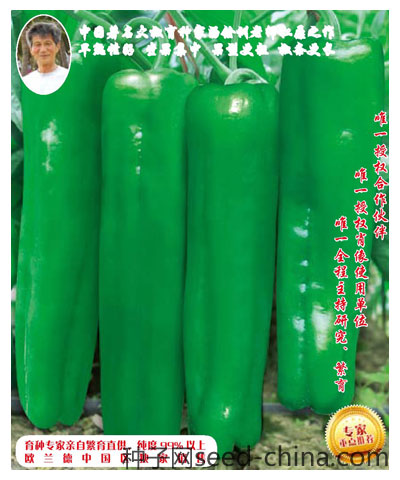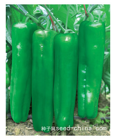 | 简介:早熟、大果、商品性好,微辣,果色绿亮,果长22-25cm,粗4-5.5cm,易坐果、不早衰、产量更高,高产单株结果可达5-7斤;高抗病,耐重茬性好,耐高温、低温性能卓越。 |