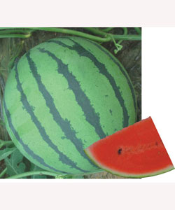简介:早熟,外观花纹漂亮,瓜型周正,条纹整齐细窄,有蜡粉,瓤色大红,单瓜重7-8kg,耐裂性好,耐储运 KeridaEarly maturity and the average fruit weight is 7 to 8 kilogram; uniform shape an