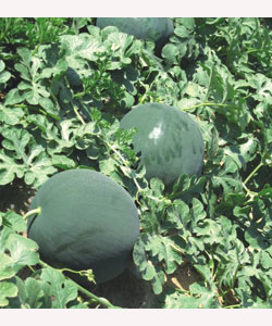 简介:纯黑皮椭圆型西瓜,有蜡粉,单瓜重10kg左右,抗病性强,产量高 Hei Zhuang Yuan:Black rind and long-oval shape; prolific and resistant to disease; the average fruit weight is abou