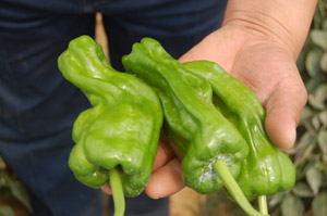 | 简介:三系配套杂交而成,早熟,黄绿色粗大牛角椒,果长24-33cm,单果重120g左右,色泽艳亮,辣味适中,膨果速度快,连续座果性强,果厚肉硬,耐贮耐运,商品性优秀;抗辣椒病毒、灰霉、疮痂、斑枯、疫病等多种椒 |