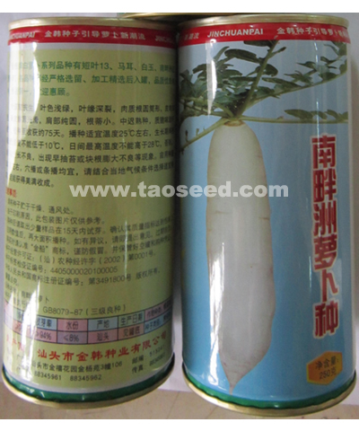 简介:新育成品种,耐热,耐寒,春夏秋均可种植。生长快,夏季播种后约56天可初收。求春季播种后约60天可初收,延期采收一个月左右都不会影响品质。表皮洁白光滑,肉质爽脆,不易糠心,口感凉后,品质极优。抗