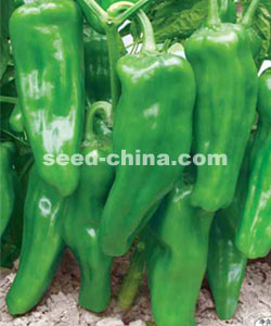 简介:特征特性: 早熟,生长势较强,座果集中且多,膨大迅速,果实粗牛角形,果长14-16厘米,果宽5-6厘米,单果重90-110克,果色嫩绿,果表有纵棱,肉厚,品质佳。抗病性强,产量高。栽培要点: 本品种品质