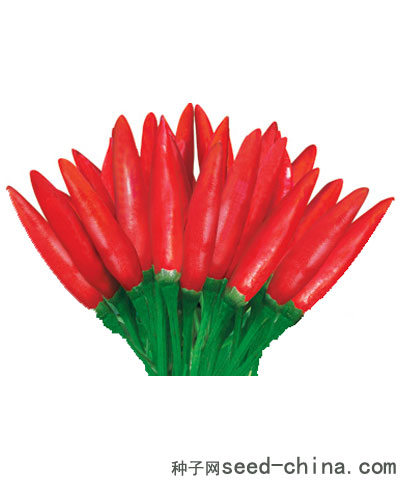 简介:国外引进杂交簇生朝天椒新突破品种:1.早熟,株高72cm左右,株幅35cm左右,辣椒更早提前上市;2.高产丰产,每株7-8簇,果长5-7cm,粗0.9-1.1cm,单株结果130-150个,平均单果重3g,座果一致、集中,可一