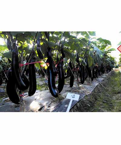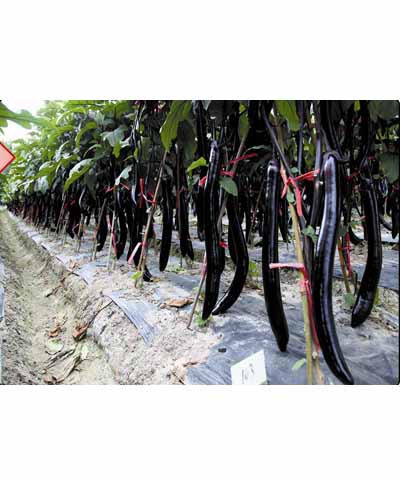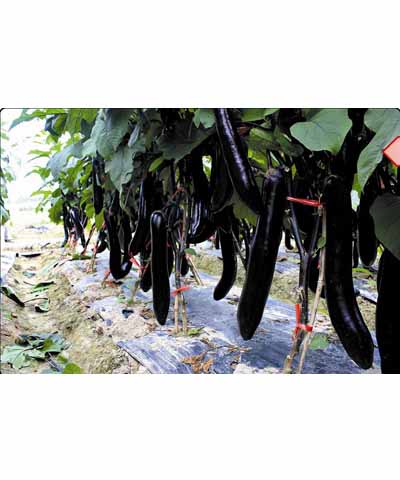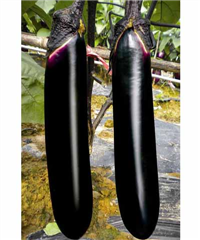 | 简介:①早熟,膨果速度快;②果长28—35cm,粗5.5-6.5cm;③颜色特黑亮,商品价值高;④果型顺直无大头。①precocious, expanding fruit speed;②The fruit is long 28, 35cm, coarse 5.5-6.5cm;③The sp |