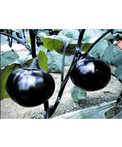 | 简介:①早熟、丰产、抗病圆茄一代杂交;②果实近圆球形,果实紫黑发亮,果肉浅绿白色;③耐低温弱光,株形直立、紧凑,连续坐果能力强, 平均单株结果8-10个,单果重500-600克;④品质佳,适宜保护地和露地栽培。① |
